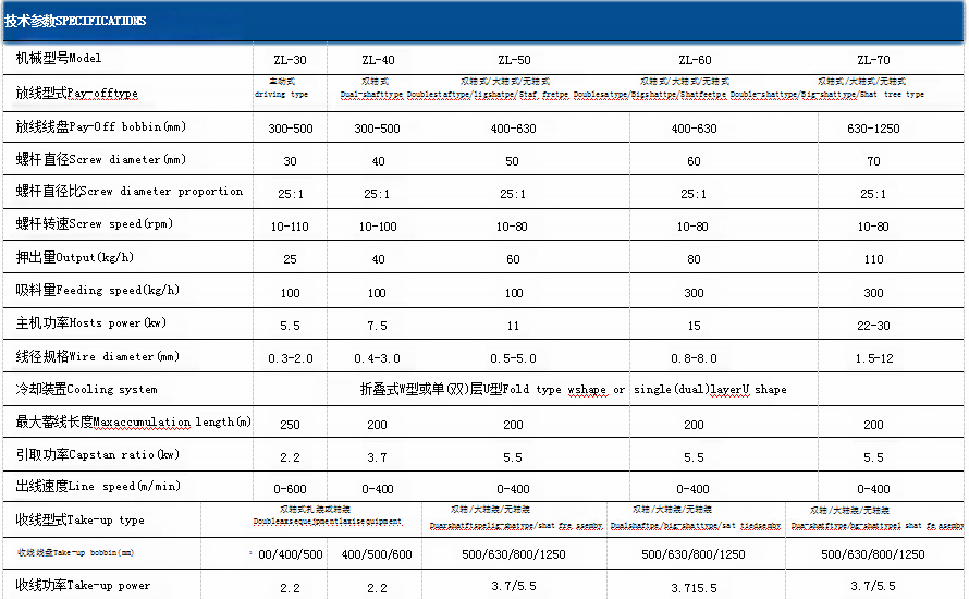 适用于PVC、LDPE、XLPE、LSHF、NYLON、TPU、TPE等绝缘材料的电线电缆单层、双层、三层押出作业。本设备主要骨架及 储线架采用于进口铝合金材质制作具有美观、轻便、环保之优点,现已广泛用于各类耳机线、电子线、电源线押出机的制造。