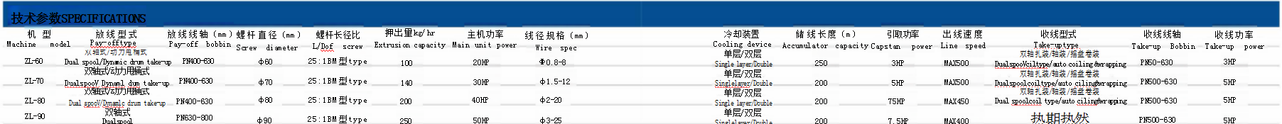 适用于各类BV、BVR、BVN、RV、低烟无卤阻燃环保建筑布线及薄皮尼龙护套电缆双层挤出;